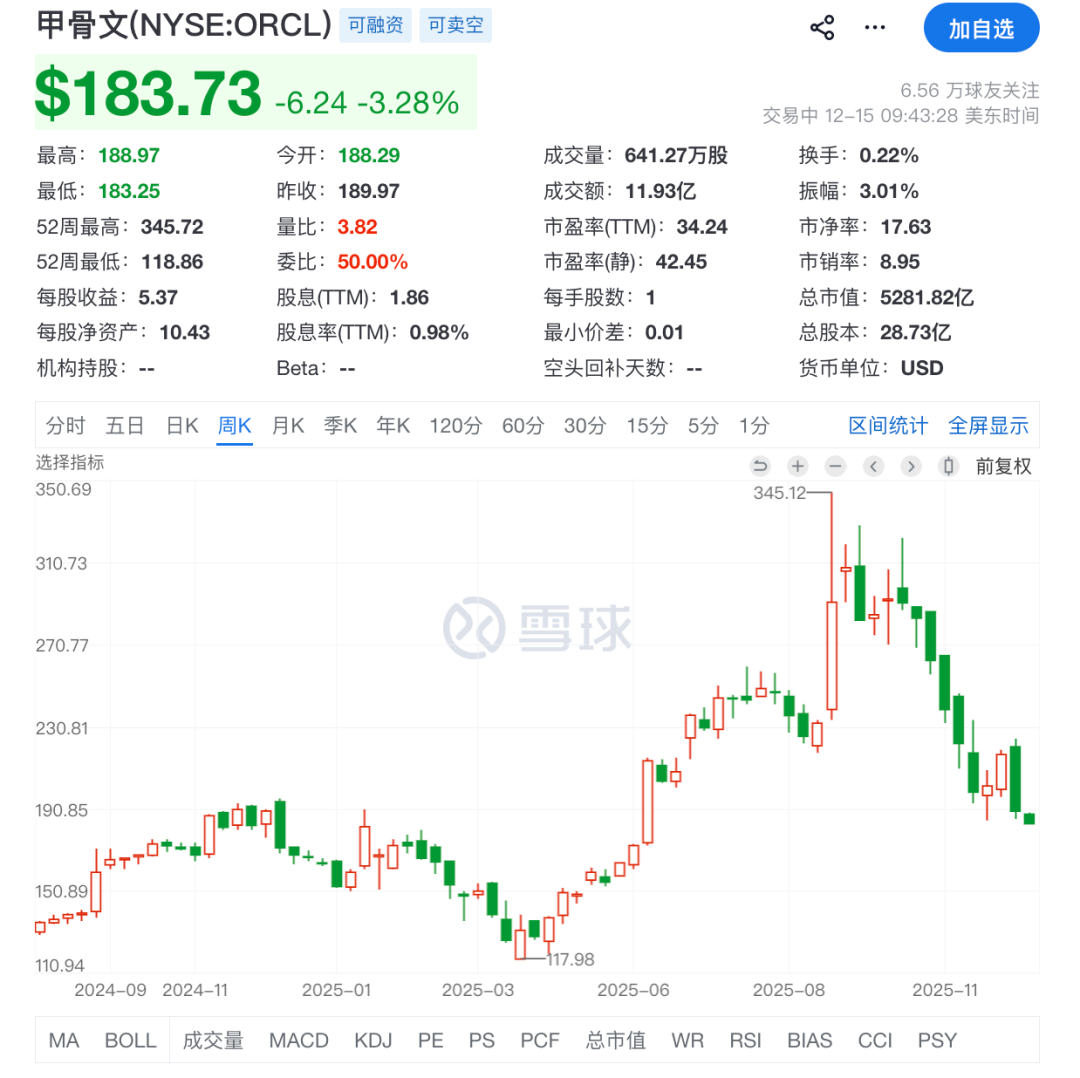 周线看,甲骨文已经跌到去年这个时候的股价了。拉里当了一次首富以后,很快又下来了。