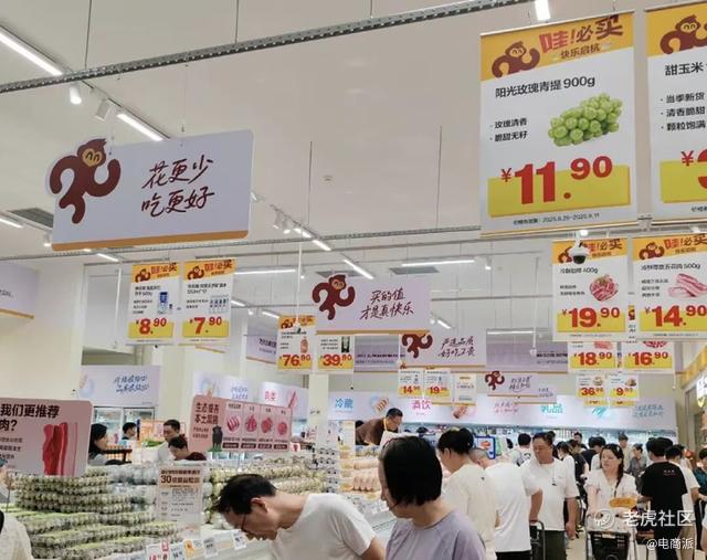 快乐猴主打低价心智,以800-1000平方米社区店聚焦价格敏感型客群,通过精简SKU与高占比自有品牌实现极致性价比;