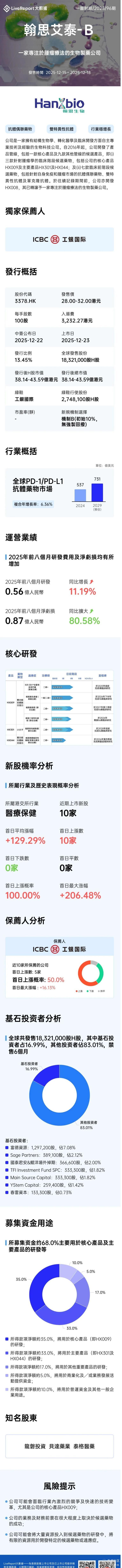 12月15日,翰思艾泰-B(3378.HK) 开启招股,招股日期为2025年12月15日至2025年12月18日,并预计于2025年12月23日在港交所挂牌上市,独家保荐人为工银国际。