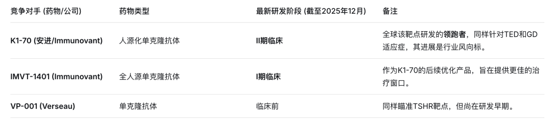 3)冷门赛道大收获。GenSci098属于促甲状腺激素受体(TSHR)的拮抗型单抗,通过抑制甲状腺激素的合成和释放从而抑制甲状腺细胞的增殖、阻止HA和炎症因子释放,并能改善突眼。甲状腺亢进在妇女中易感人群较多,跟吸烟、妊娠、应激、高碘饮食有关。目前的标准疗法有抗甲状腺药物(ATDs)治疗、放射性碘131治疗和手术治疗,但都存在疗程长、复发率高、可能导致甲减或并发症等问题。GenSci098所在的TSHR靶向治疗赛道属于前沿领域,全球竞争者不多,但各有特点。美国创新药企Immunovant的K1-70(与安进合作)目前进展最快,处于临床2期,另外一款IMVT1401处于临床1期。GenSci098处于这一赛道的第二位置,其价值还是被外资挖掘出来了。