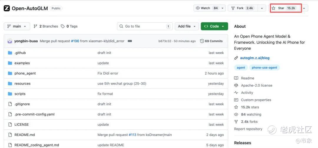 集成程度差异:豆包是系统级、软硬一体;AutoGLM是外挂型组件;产品体验一致性不足:前者开机就能用,后者往往需要一定的技术门槛。但这并不妨碍它在开源社区的走红:项目开源仅48小时,GitHub Star数从0飙升至8K,截至12月15日,已突破15K。
