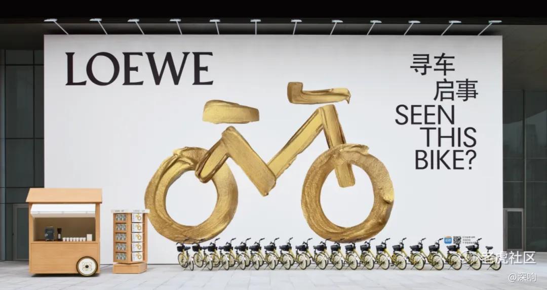 今年年初Loewe就和哈啰单车合作推出「罗意威金色骑旅」限时体验活动,在上海街头投放限定款金色共享单车,用户累计骑行 3 公里即可获得限定勋章,领取限定画报、咖啡等赠品。这次跨界合作掀起了上海市民的骑行热潮,预约骑行名额几乎“秒抢光”,短短数天内小红书平台话题浏览量就接近300万。