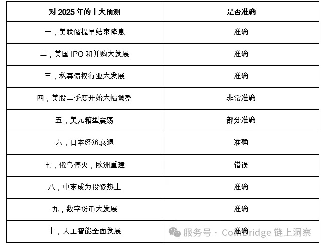 上一次在2024年年底的十个预测中,一个错误,八个准确,一个部分准确。可以说整体准确率是85%。当然,现在回顾起来,一年前最准确的一个预测是美股在今年二季度大幅调整。今年美股在4月-5月跌入熊市,特别是 $纳斯达克(.IXIC)$ 下跌超过了30%。当然里面既有白宫的关税政策的冲击,也有大量获利盘担心下行风险的原因。华尔街有一个说法:“预测是特别困难的,特别是对于未来的预测。”