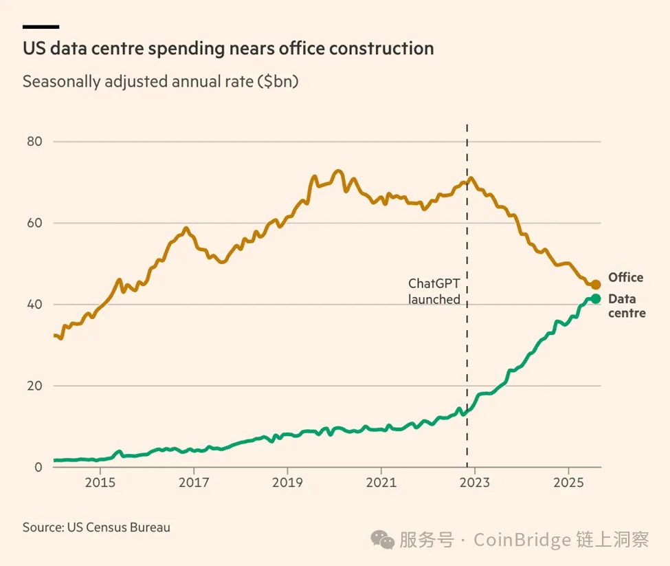 (美国办公楼投资下降和数据中心投资上升比率为1:1)