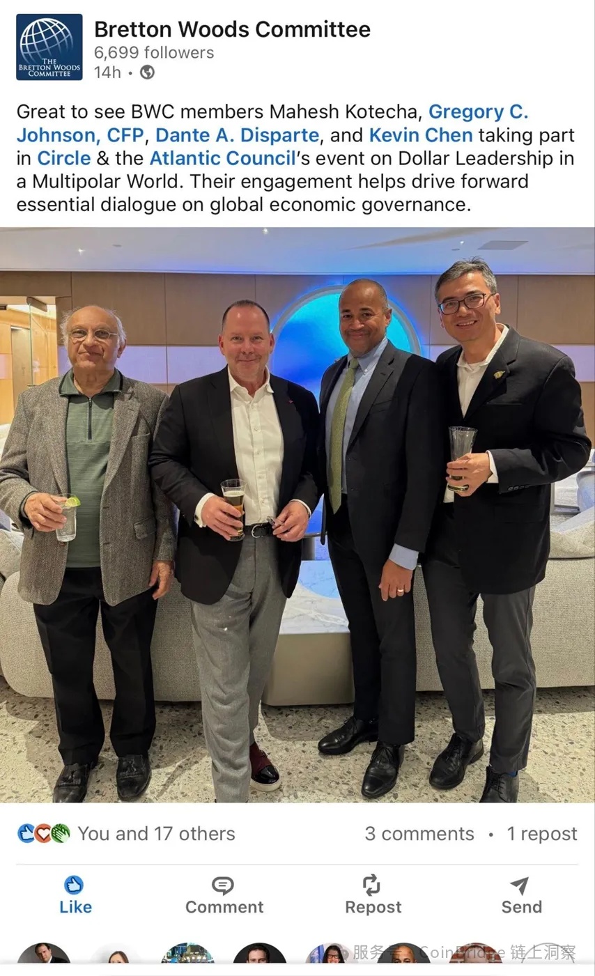 (布林顿森林体系委员会发布的社交媒体照片:笔者和其他委员一起参加 Circle / 大西洋理事会关于数字货币和全球治理的研讨会)