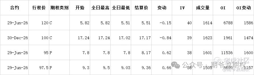 (3)美团:12月最大持仓范围100-137.5,窝轮牛熊街货分布90-110,今收99.5,下跌1.39%。期权盘路变化超过1000张的仓位如下,今天美团期权市场比较冷清,主要是布局明年6月份的,但也不是很看好。虽然京东撤出外卖大战,但阿里还在,而且抖音和高德的背刺,美团短期基本面很难好转,未来能保持不跌就很不错了。