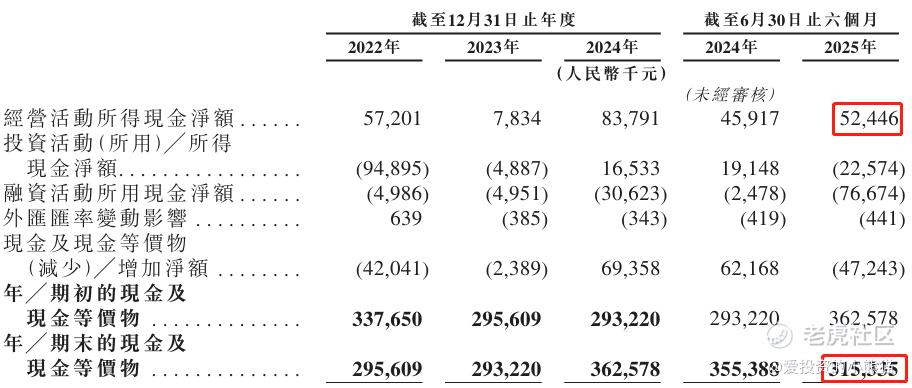 截至2025年6月30日,公司账上现金有人民币3.15亿元,经营活动现金流为0.52亿元。