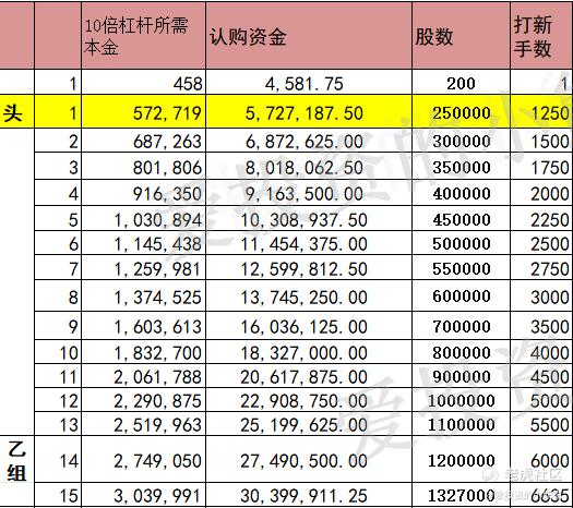 乙头需要认购资金573万,乙组的各档融资所需要的本金还有融资金额对应如下表: