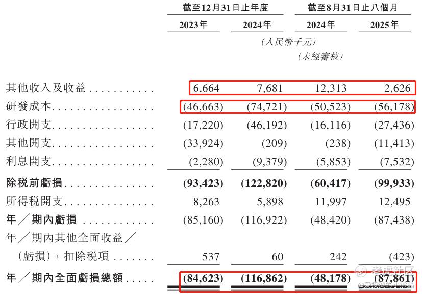 截至2024年12月31日止2个年度、2024年及2025年前8个月: