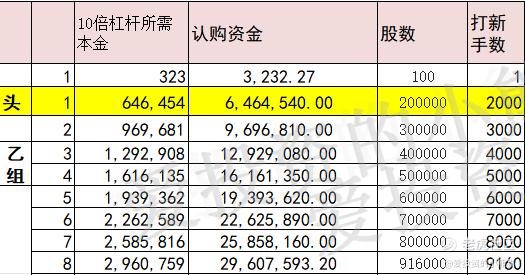 乙头需要认购资金647万,乙组的各档融资所需要的本金还有融资金额对应如下表: