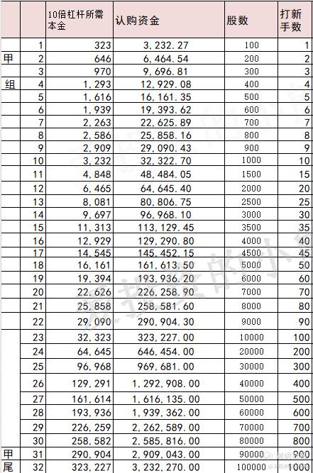 甲组的各档融资所需要的本金还有融资金额对应如下表: