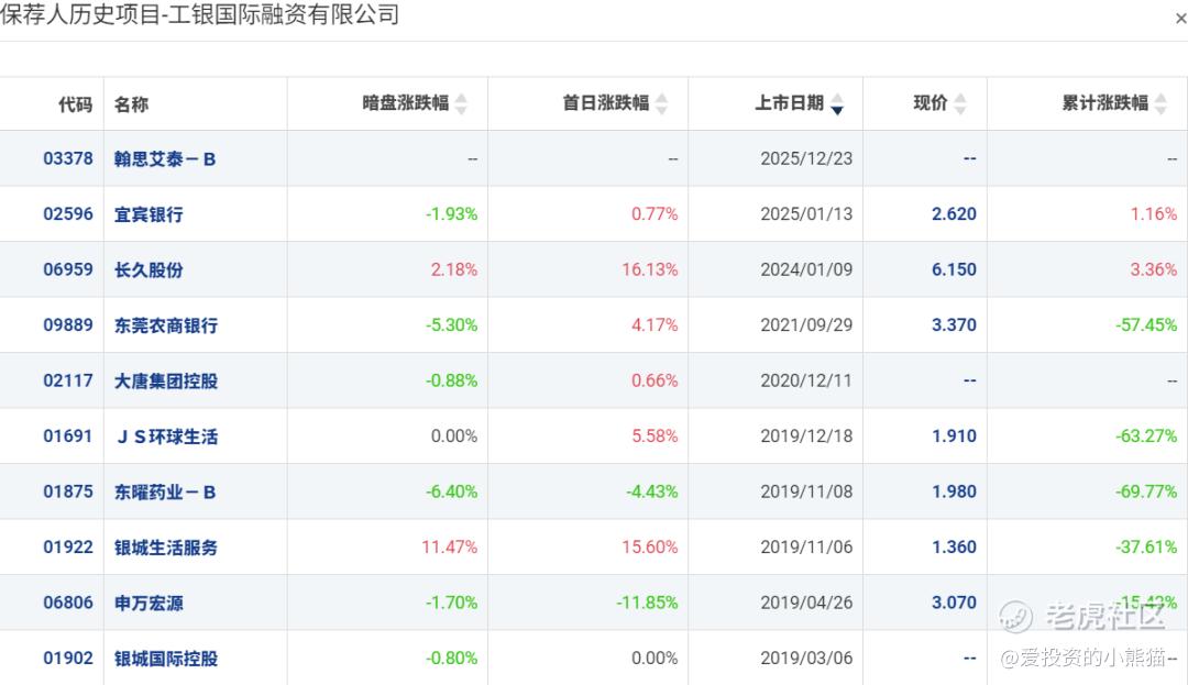 工银国际融资有限公司,保荐的历史项目暗盘涨少跌多!