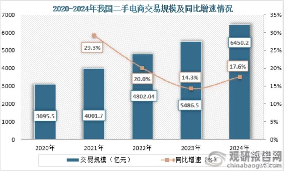 交易规模同步扩大,2024年中国二手电商交易额6450.2亿元,同比增长17.56%,这一变化反映了二手市场逐渐从小众走向主流。