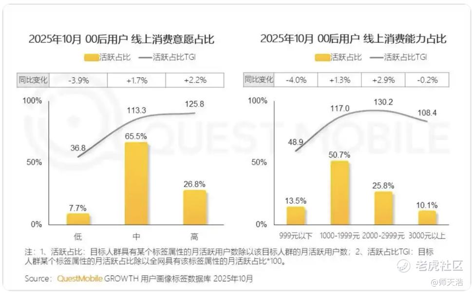 以10月的数据为例,中高消费意愿的00后占比接近95%,展现出稳定的消费意愿与强劲的消费能力。