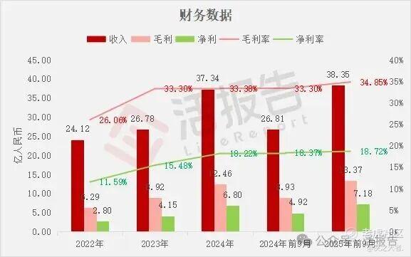 收入分别约为人民币24.12亿、26.78亿、37.34亿、26.81亿、38.35亿,2025年前9月同比+43.07%;