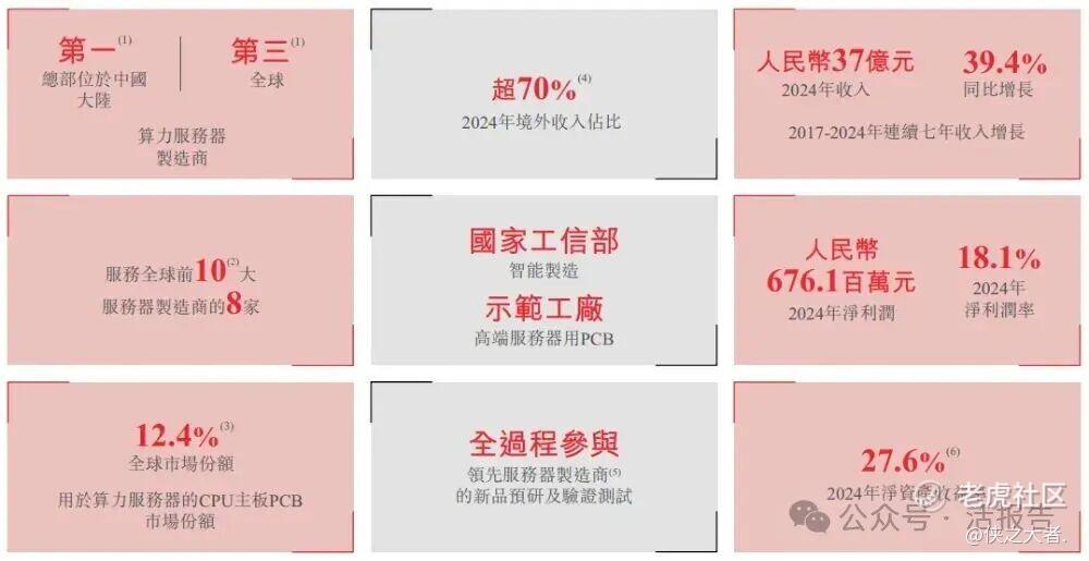 公司致力于制造算力服务器关键部件PCB。公司主要从事研发、生产及销售应用于算力服务器及其他算力场景的定制化PCB。根据弗若斯特沙利文的资料,以2022年至2024年的算力服务器PCB累计收入计,公司在全球算力服务器PCB制造商中排名第三,在总部位于中国大陆的算力服务器PCB制造商中排名第一。