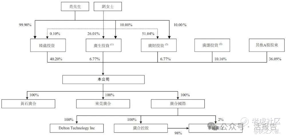 肖红星先生与刘锦婵女士,通过臻蕴投资合计持股40.20%(臻蕴投资由其持股99.90%),通过控制广生投资(持股6.77%)、广财投资(持股6.77%)间接持股,总计控制公司53.74%股份;