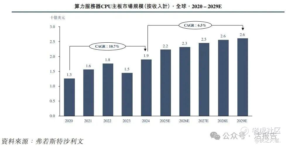 在算力服务器PCB市场中,CPU主板是核心产品之一,2024年全球销售额达到19.0亿美元。在算力服务器市场稳步增长的驱动下,CPU主板的市场规模将以6.5%的年复合增长率增长,2029年有望达到26.0亿美元。