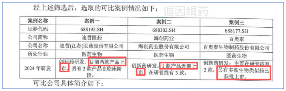 评估机构通过“市研率”科学计算出来的,选取了迪哲药业、海创药业和百奥泰药业作为参考可比公司。