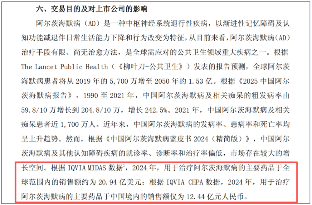为了证明AD市场庞大,复星引用了IQVIA(艾昆纬)的数据。