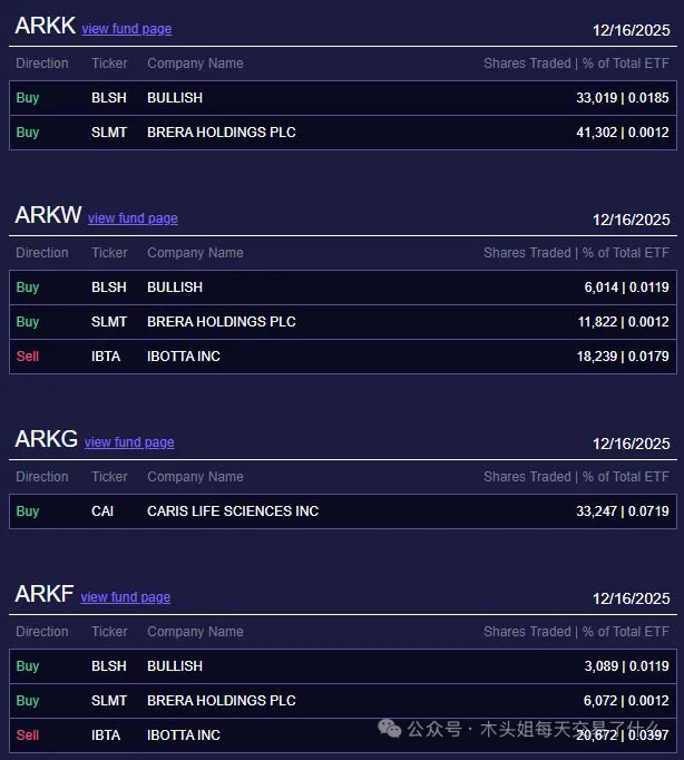 木头姐今天买入180万美元BLSH 卖出80万美元IBTA