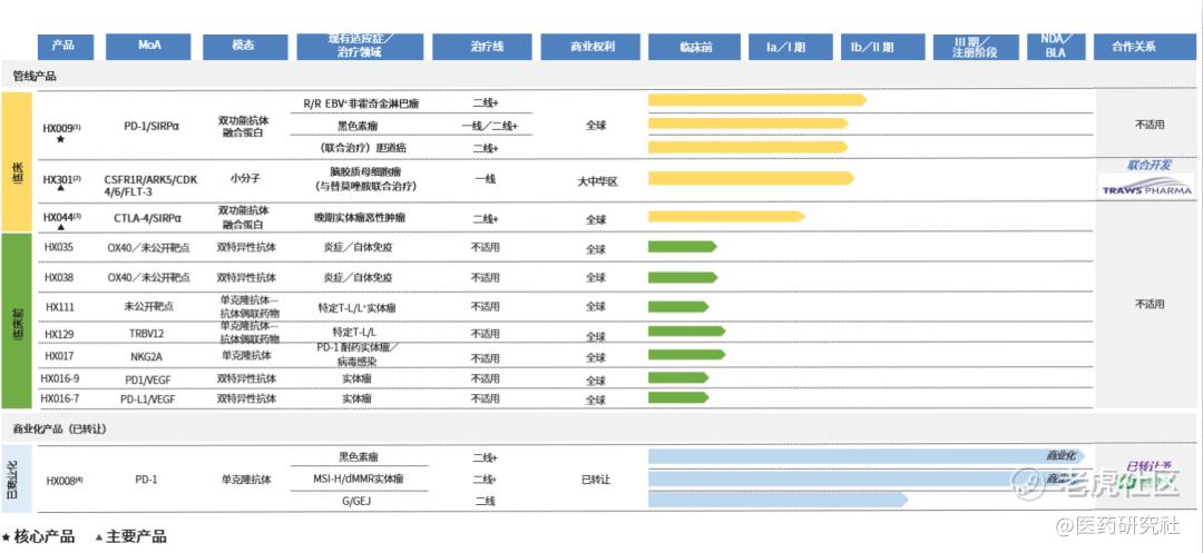 目前HX009有三个正在中国进行的临床项目,包括:治疗晚期黑色素瘤的HX009-I-01中国研究(Ib期);治疗复发性/难治性EpsteinBarr病毒阳性非霍奇金淋巴瘤的HX009-II-02中国研究(I/II期);治疗晚期胆道癌的HX009-II-05中国研究(IIa期)。