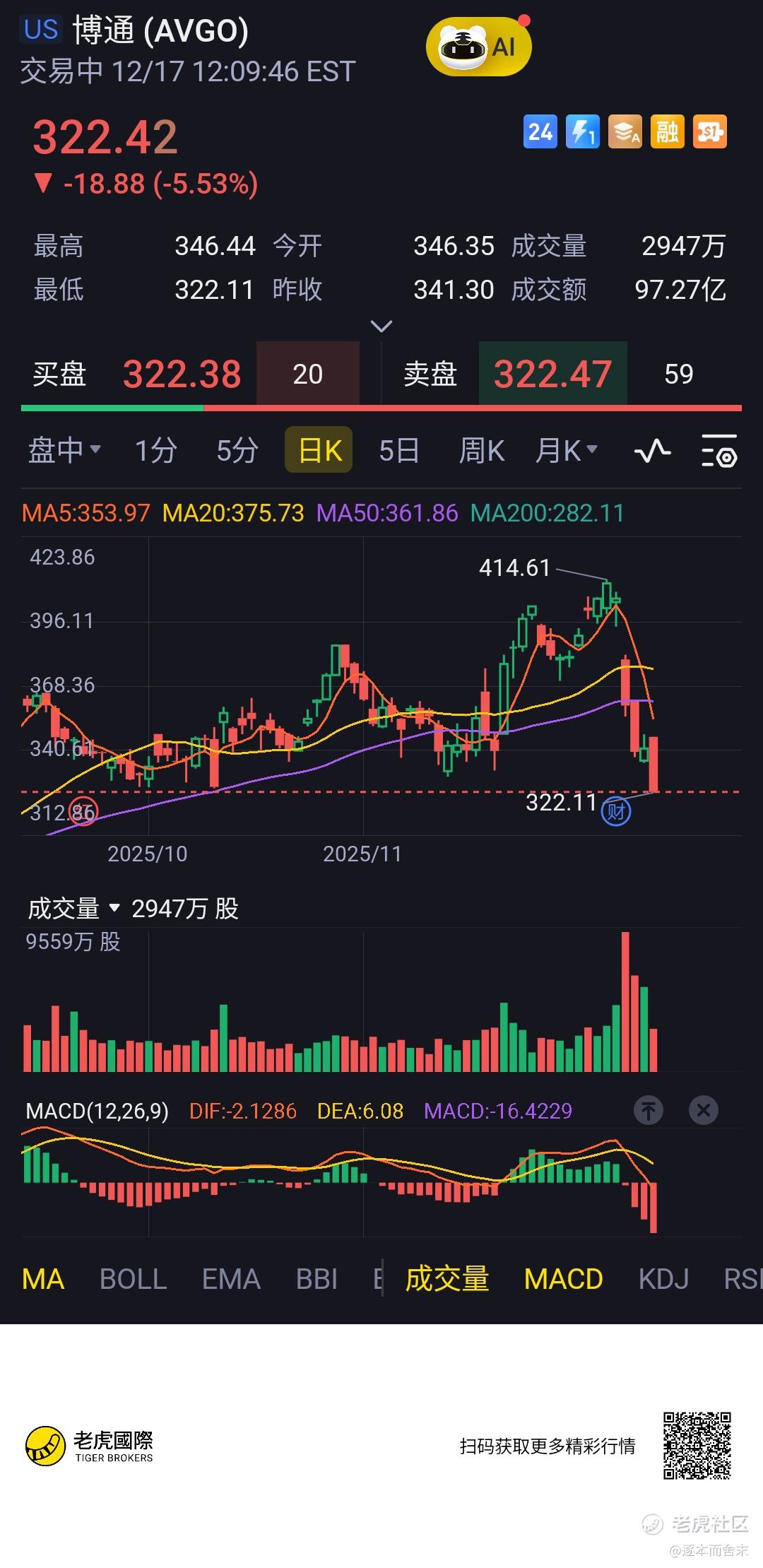 $博通(AVGO)$ 付海棠:硬跌 你还跑去接盘(自以为是抄底),浮亏加仓,基本没好,早晚的事。