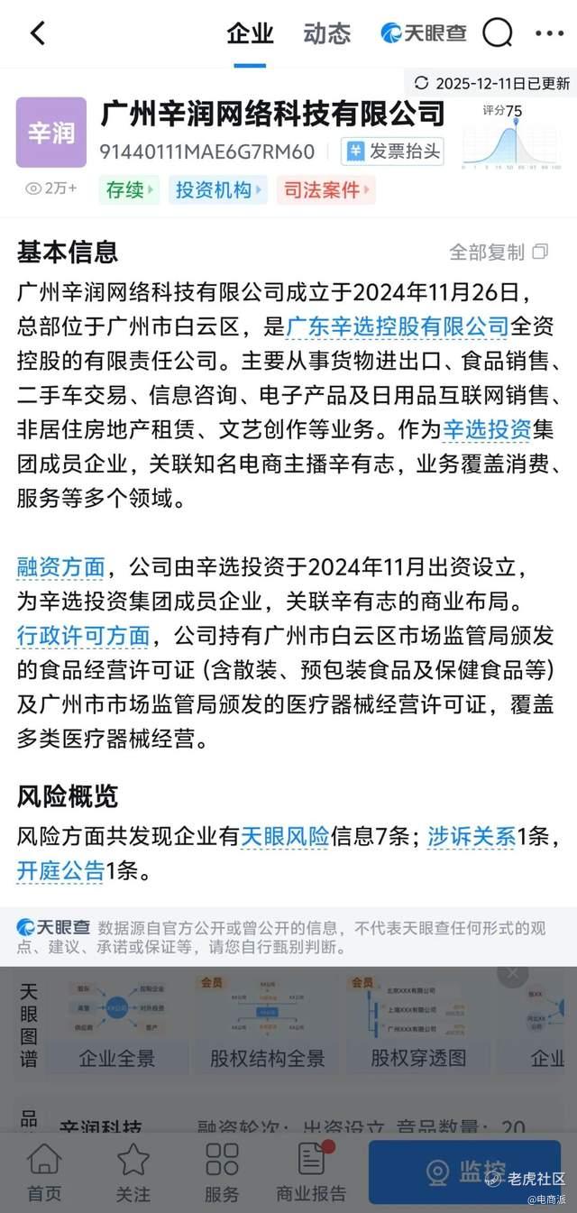 值得注意的是,虽然蛋蛋已独立运营,但经查询,她快手主账号的店铺主体仍为广州辛润网络科技有限公司。