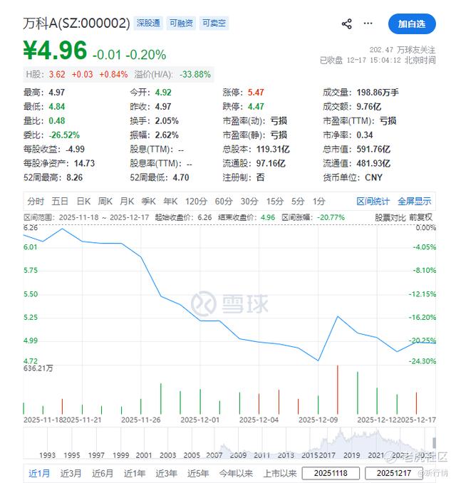 万科A近一个月股价 图源:雪球