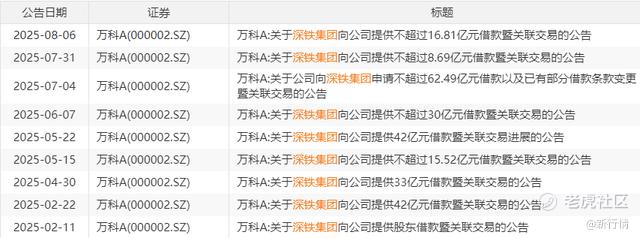 深铁集团向万科提供借款 图源:新浪财经