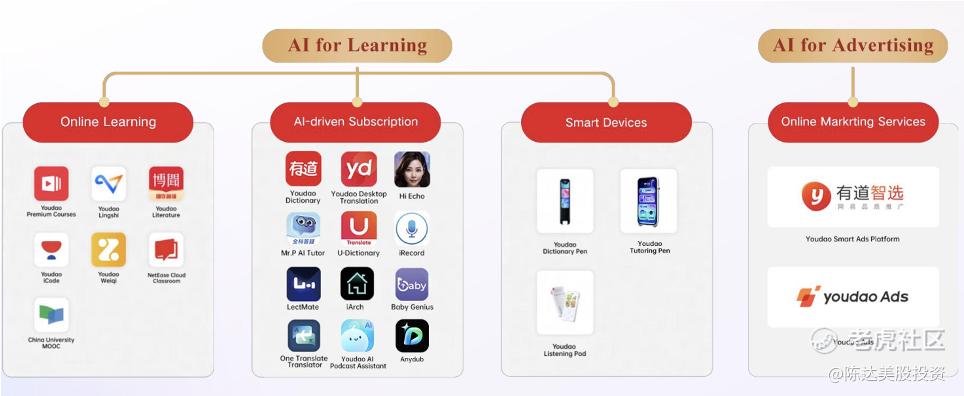 曾经大家认为有道是教育股,比如有道词典,解决掉你把“佛跳墙”翻译成“God use VPN”这样的尴尬问题(真事,非段子);而现在公司的业绩主要靠AI催化,主要是AI全面升级后的 1.(程序化)广告业务、2. 订阅服务、3. 智能学习硬件 4. 在线课程,AI直接大幅提高有道货币化能力。