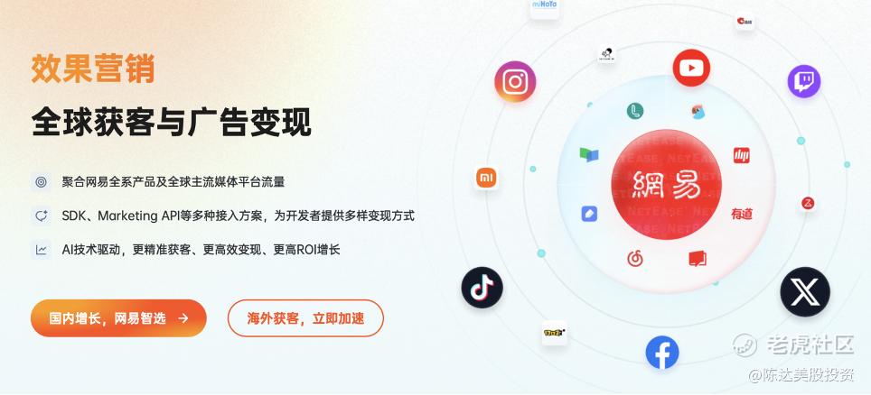 第一:游戏基本盘,稳而猛,决定下限。背靠网易,游戏广告收入同比增长超50%。典型案例就是给《燕云十六声》做的整合营销,超5亿视频播放+2140万直播曝光的战绩,证明“程序化广告+网红营销”组合。未来版号常态化加上向外拓展其他游戏客户,这块依然是增长的基本盘。