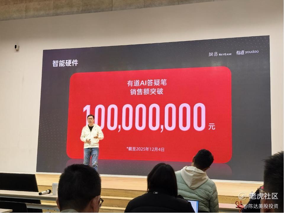 第二个是,智能硬件方面,公司三季度发布有道 AI 答疑笔 Space X。这个产品,将大模型的理解、推理和交互能力与“笔”这一硬件形态(其实外形不像笔,像手机,而且确实能打电话,但完全不能娱乐)结合。股东大会说,截至12月4号,有道AI答疑笔销售额突破一个亿。说明了AI原生商业化,也不止是订阅服务这一种模式。