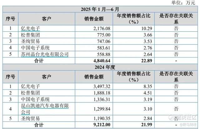 不过创达新材的客户集中度并不高。2022年—2024年及2025年上半年,公司前五大客户贡献的销售额合计分别占各期全年销售额的20.51%、22.64%、21.99%和22.89%。