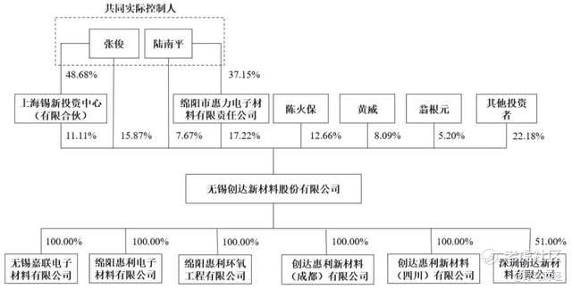 2014年4月,为推进创达新材2015年完成股改及首次挂牌新三板,无锡绍惠增资引入新股东中国台湾六和化工旗下的两家全资子公司,及无锡绍惠核心员工周宏和陈阳,创达新材对无锡绍惠的持股比例由此被稀释至35.09%,自此对后者不再具有控制权。而中国台湾六和化工创立于1971年,是中国台湾化学原材料的重要供应商之一。