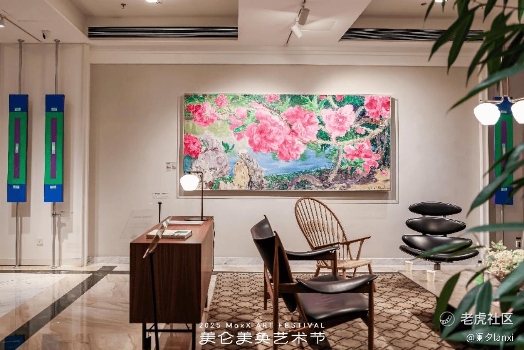 在这里,窗外江景、酒店光影与艺术作品是相辅相成的,大堂中挂着出自当代顶流艺术家周春芽之手的《瘦西湖的桃花》和尹朝阳《千里江山》等艺术名作,画布上的热烈与窗框里流淌的黄浦江景,一静一动,构成了历史与当下最生动的互文。大堂不定期轮换展览,让艺术持续流动、生长于酒店空间,也让来往的旅人亲身感受美仑美奂的品味与腔调。