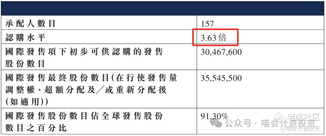 国际发售3.63倍,157名投资者,这比例和人数,都很不错了。
