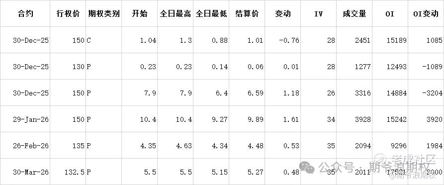 (2)阿里:12月最大持仓范围110-150,窝轮牛熊街货分布130-165,今收144.1,下跌1.30%。期权盘路变化超过1000张的仓位如下,资金有进有出,总的来说,市场对阿里的观点是短期内窄幅震荡。