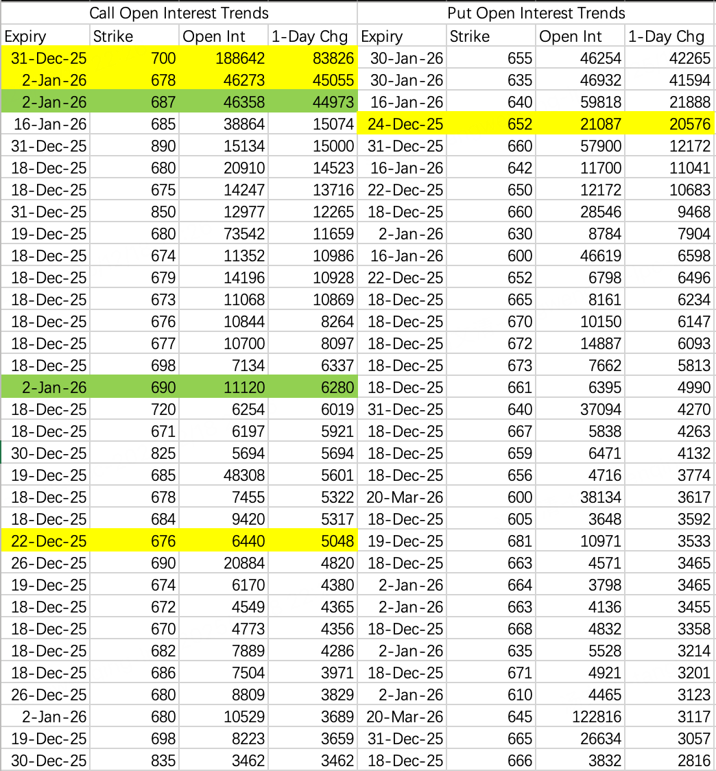 坏消息看涨大单跑路平仓了 $TSLA 20260220 600.0 CALL$ ;好消息是大单好像是有内幕的韭菜,今天又开新仓买入了: $TSLA 20260220 645.0 CALL$ $TSLA 20260220 650.0 CALL$  $TSLA 20260220 655.0 CALL$