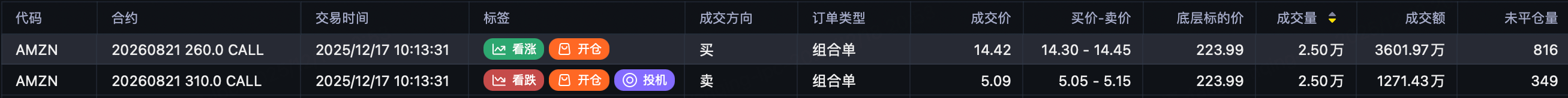 买入 $AMZN 20260821 260.0 CALL$