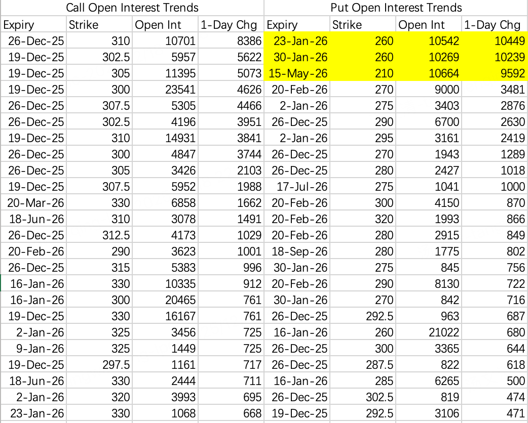 谷歌破位空头追加看跌到260以及210的看跌大单: