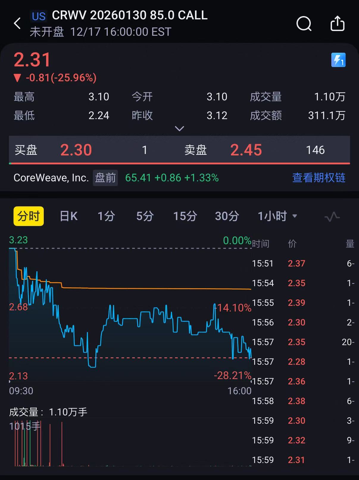 long call进场买入,开仓量惊人,100call$CRWV 20260320 100.0 CALL$ 开仓买入5万手,85call $CRWV 20260130 85.0 CALL$ 开仓买入1万手,总计约2250万美元。