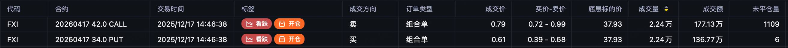 预计中概回调,大单采用了免费做空策略sell call+buy put: