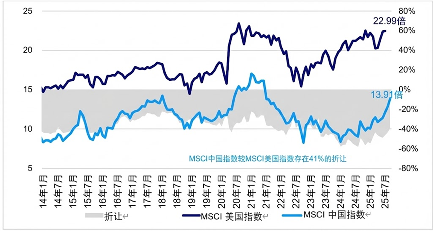 最后从估值的角度看,即便2025年中国股票已经取得了不错的反弹,但是目前MSCI中国指数的估值依然相对MSCI美国指数有大约40%的折价。水往低处流,便宜的高质量资产自然会得到全球投资者的青睐。