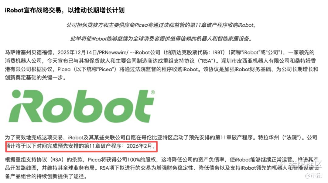 由此带来一个问题,一旦iRobot直接破产,现有的资产可能要优先偿还银行,结算员工工资等,最后留给供应商的结款具有极大不确定性。