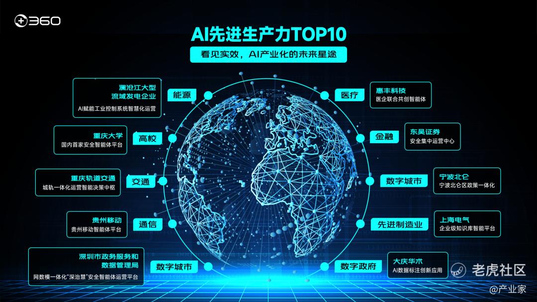 这也是这次360发布的“AI生产力TOP 10”被外界广泛关注和倍受讨论的原因,即抛开360的视角不谈,这些案例本身也是当下中国产业AI的最真实的落地标杆。
