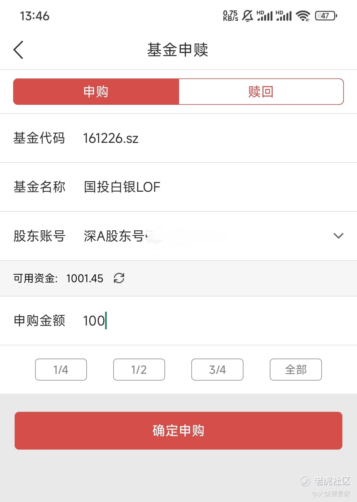 那具体怎么做?首先要有证券账户,我这里以HB证券为例,找到LOF基金申购,选择1个深圳股东账号,然后点申购。