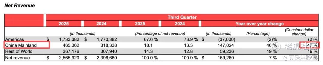 运动服饰股票中,lululemon的Q3财报披露,美国区营收跌2%,靠中国区40%+的增长,才使得这个季度的业绩超预期。同时,阿迪达斯、puma、VF、Deckers的美国区收入,全是下降,都是海外好于美国。