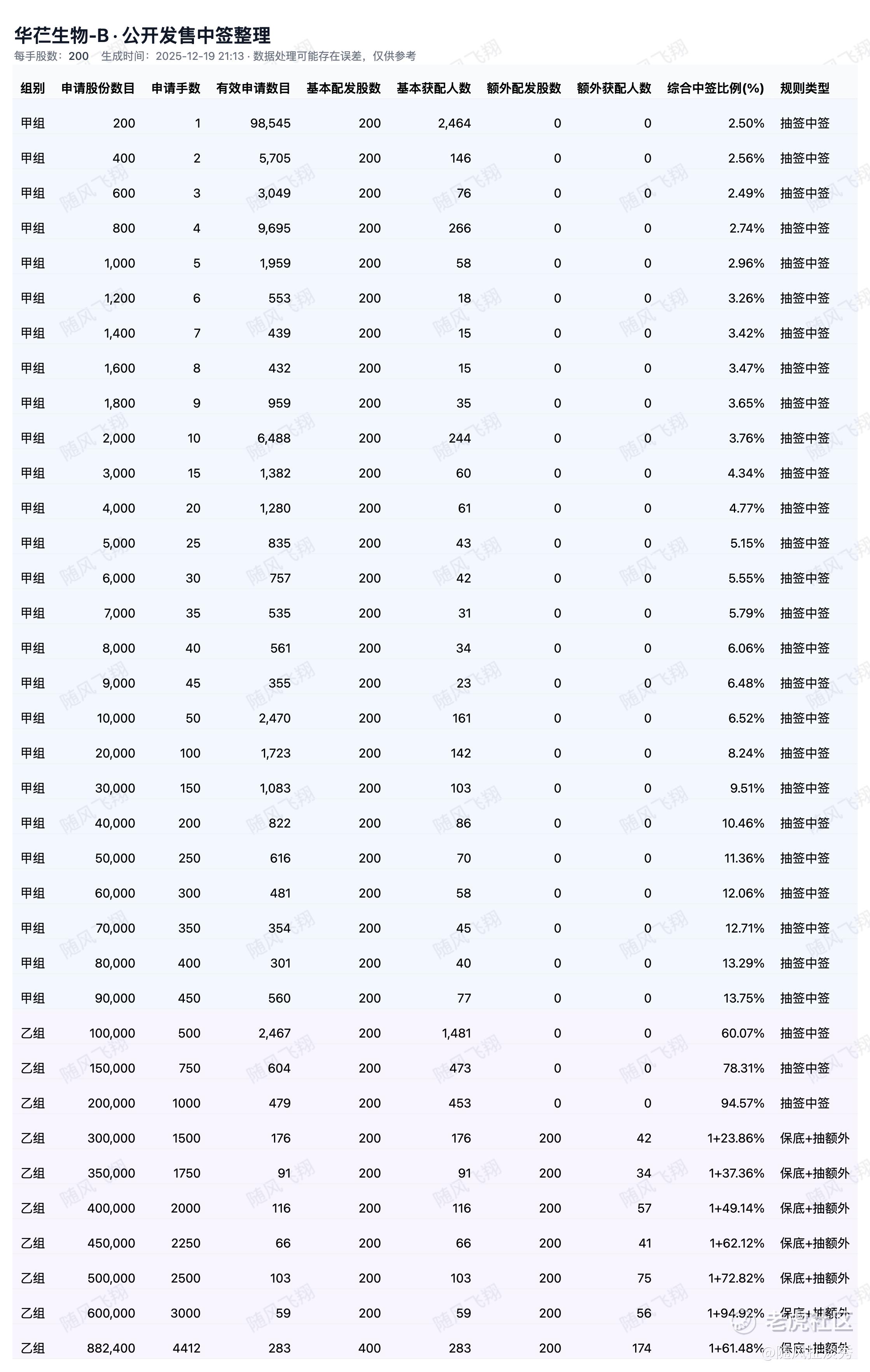 中签率公布!总体来看似乎比大红袍好点,乙组都挺好的。