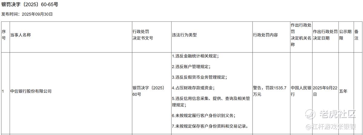 更值得注意的是,这只是中信银行在2025年收到的又一张罚单。